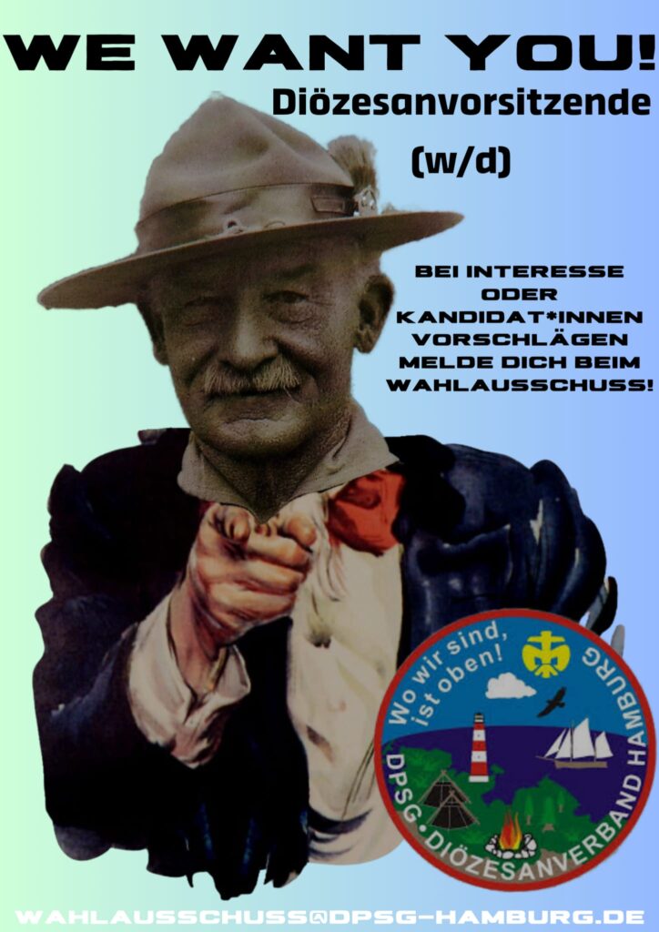 Der Wahlausschuss 2024/2025 sucht engagierte Menschen für die Ämter der Diözesanvorsitzenden und des*der Diözesankurat*in. Die Wahlen finden auf der kommenden Diözesanversammlung statt – jetzt ist die Gelegenheit, sich zu engagieren und die DPSG Hamburg aktiv mitzugestalten!